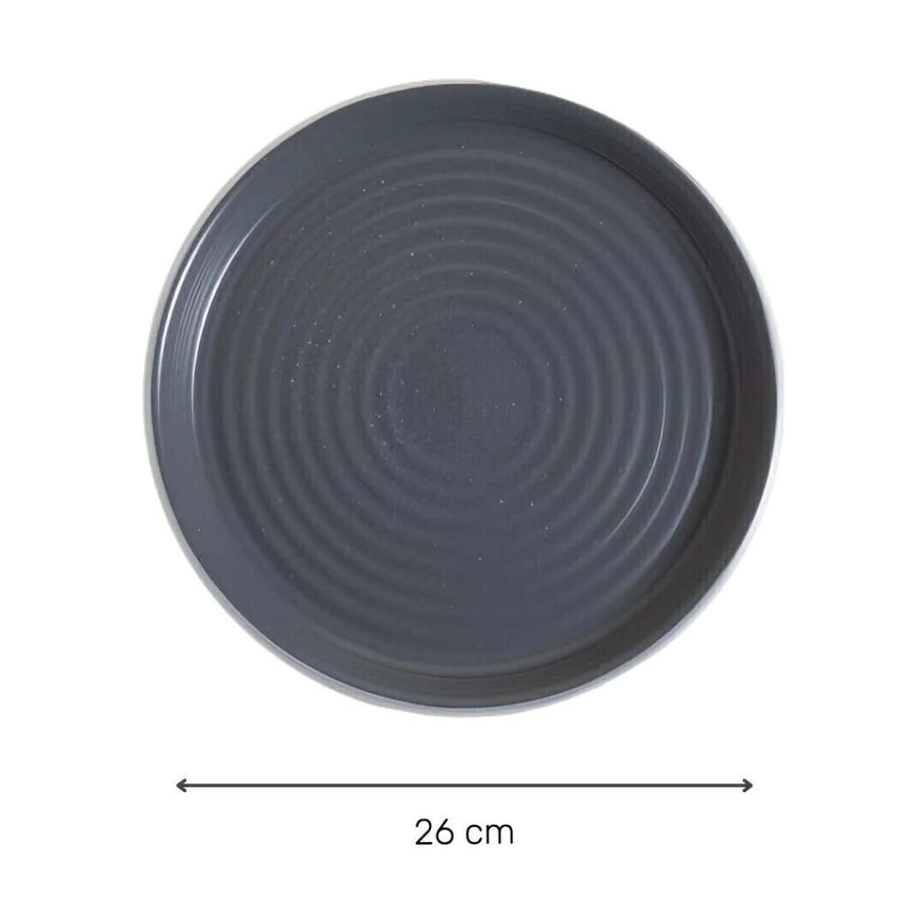 Su diseño robusto, acompañado por el detalle de pintura tipo granito, es ideal para combinar con cubiertos color acero, y copas cristalinas.